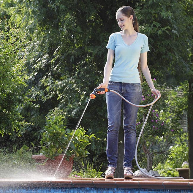 Подходящ за поливане на градински площи, миене на тераси и автомобили. Пистолетът позволява прецизен контрол на водната струя.