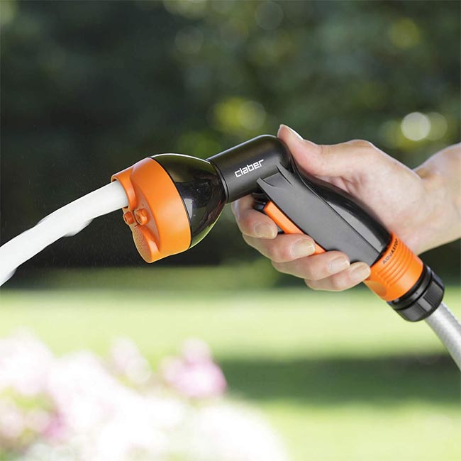 Claber са се погрижили за всичко – от качеството на материалите до лесната употреба. Маркучът е защитен от UV лъчи и водорасли, което удължава живота му. Всички компоненти са съвместими със стандартни градински системи и не съдържат вредни вещества като тежки метали и фталати. Пистолетът предлага четири режима на струята, подходящи за различни задачи – от нежно поливане до силно измиване.