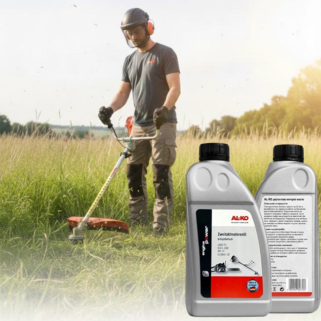 AL-KO двутактовото масло е създадено с мисъл за по-чиста работа на двигателя и по-ниско въздействие върху околната среда. Формулата му подпомага по-пълното изгаряне на горивото, което намалява дима и остатъчните частици. При правилна употреба се ограничава замърсяването и се поддържа по-чиста работна среда както за оператора, така и за природата.
