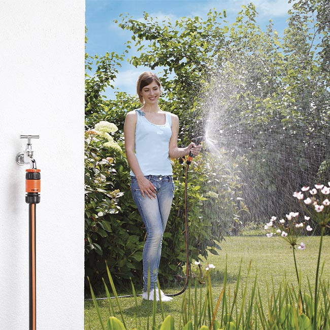 Началният комплект е предназначен за свързване на маркуч към стандартен кран. Подходящ е за ежедневна употреба в градината или двора.